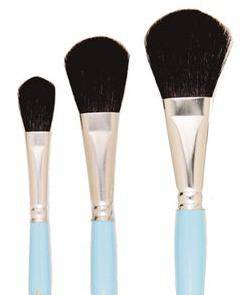Black goat hair, which makes it an affordable brush that is soft and has great water holding ability. For washes and thinned mediums. Often used to soften colour areas. Pastel, ceramic and decorative painting. Short handle.